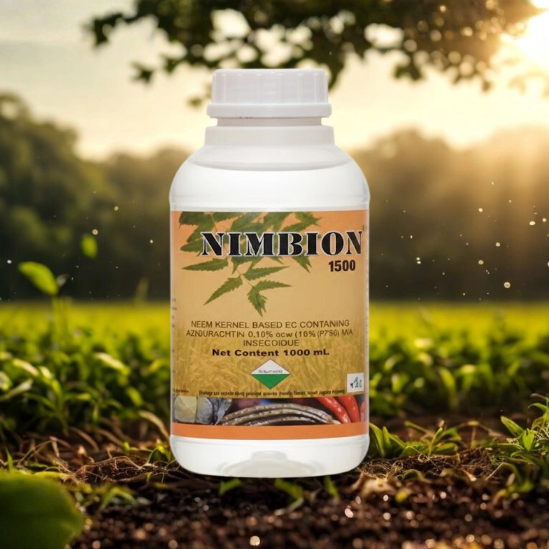 NIMBION 1500 is a neem-based biopesticide containing minimum 1500 ppm Azadirachtin and pure neem kernel oil with over 100 limonoids for powerful, natural, and effective pest control in all crops.
